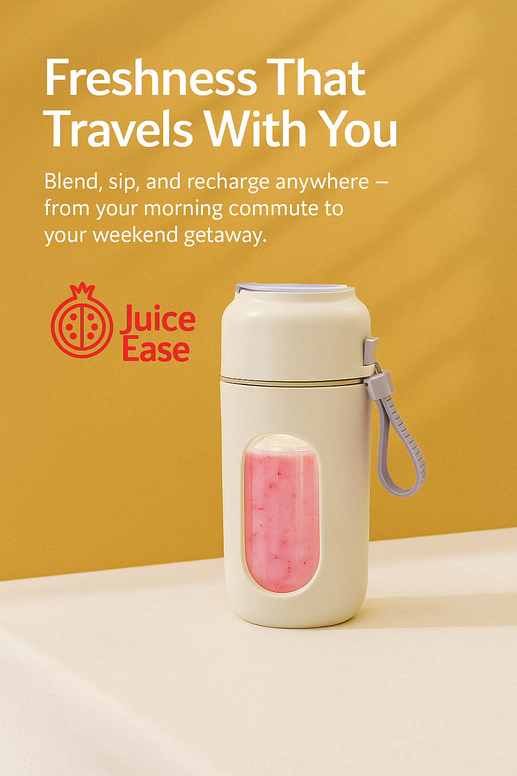 Experience the joy of fresh fruit blends wherever life takes you. With JuiceEase™, you’re never far from your daily boost of vitamins and flavor. Its portable design fits perfectly into your busy lifestyle — from early morning commutes to weekend picnics. Just blend, sip, and feel refreshed — anytime, anywhere.